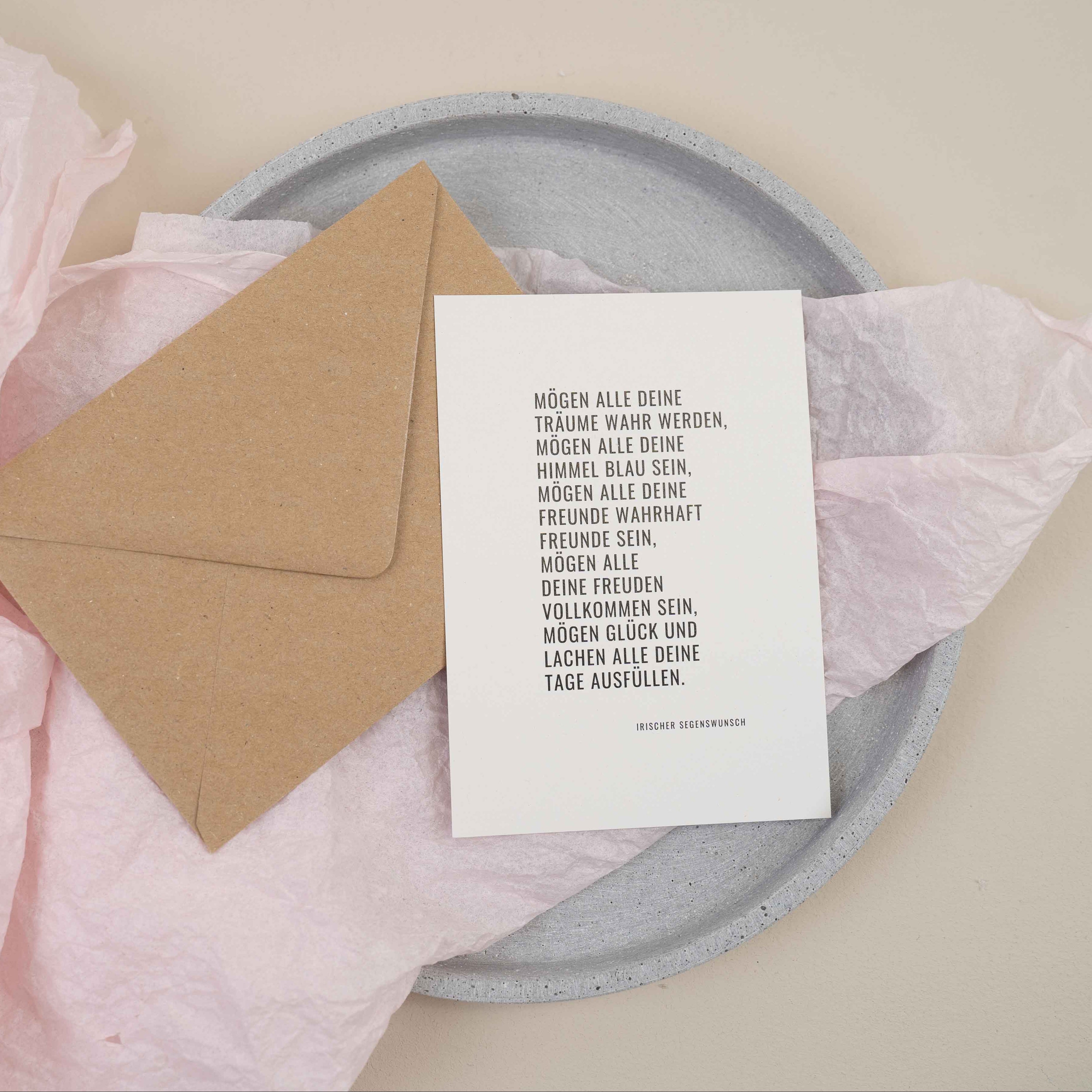Du kannst einen passenden Umschlag aus braunem Kraftpapier dazu wählen.