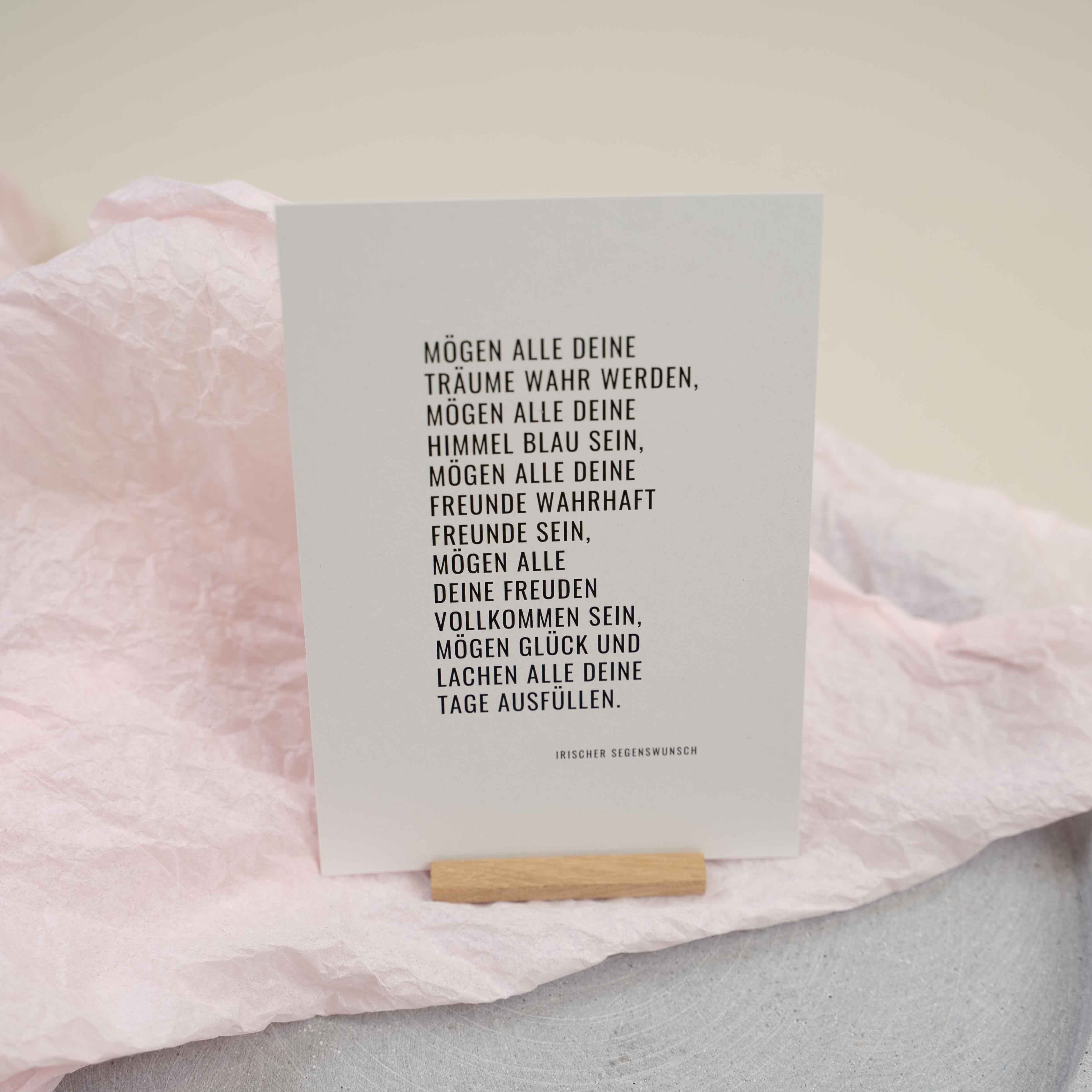 Postkarte A6 Irischer Segen "Mögen alle deine Träume wahr werden"