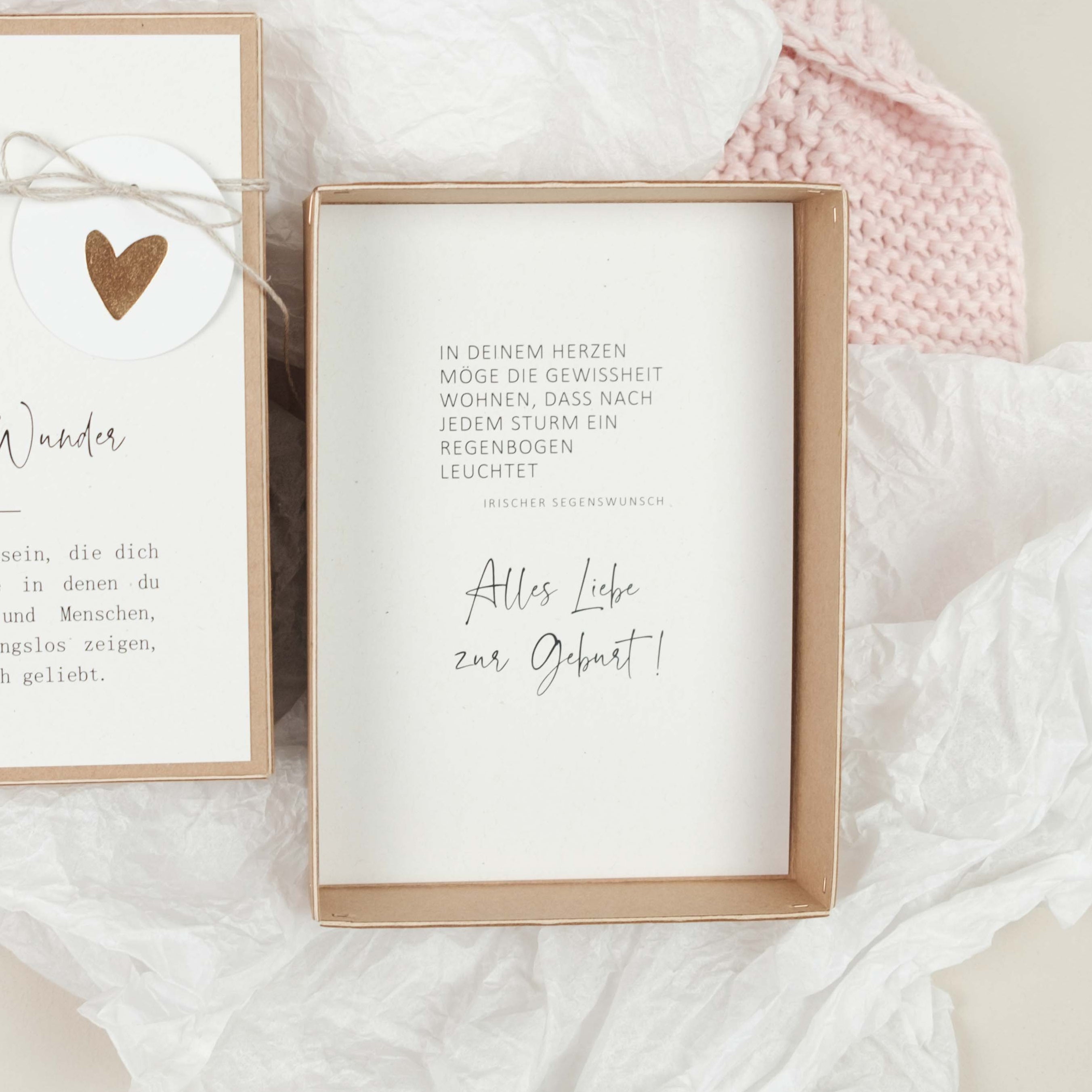 Wie wäre es da mit unserer personalisierten Geschenkbox CARA? Eine liebevolle Geschenkidee in einem wunderschönen Design.