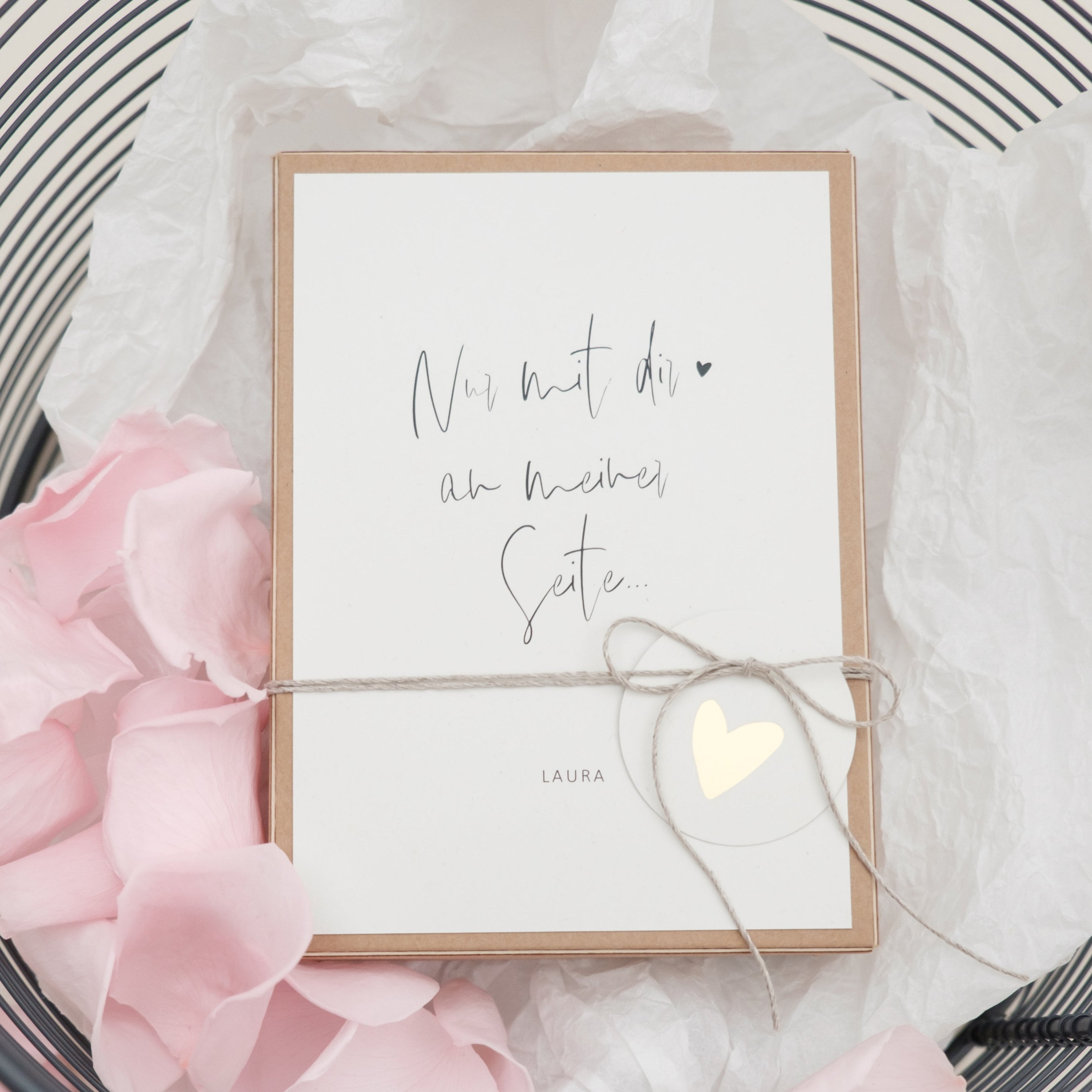 Im Deckelinneren ist ein Einschub für ein Foto im Format 10x15cm oder eine Karte bzw. Nachricht im Format A6.