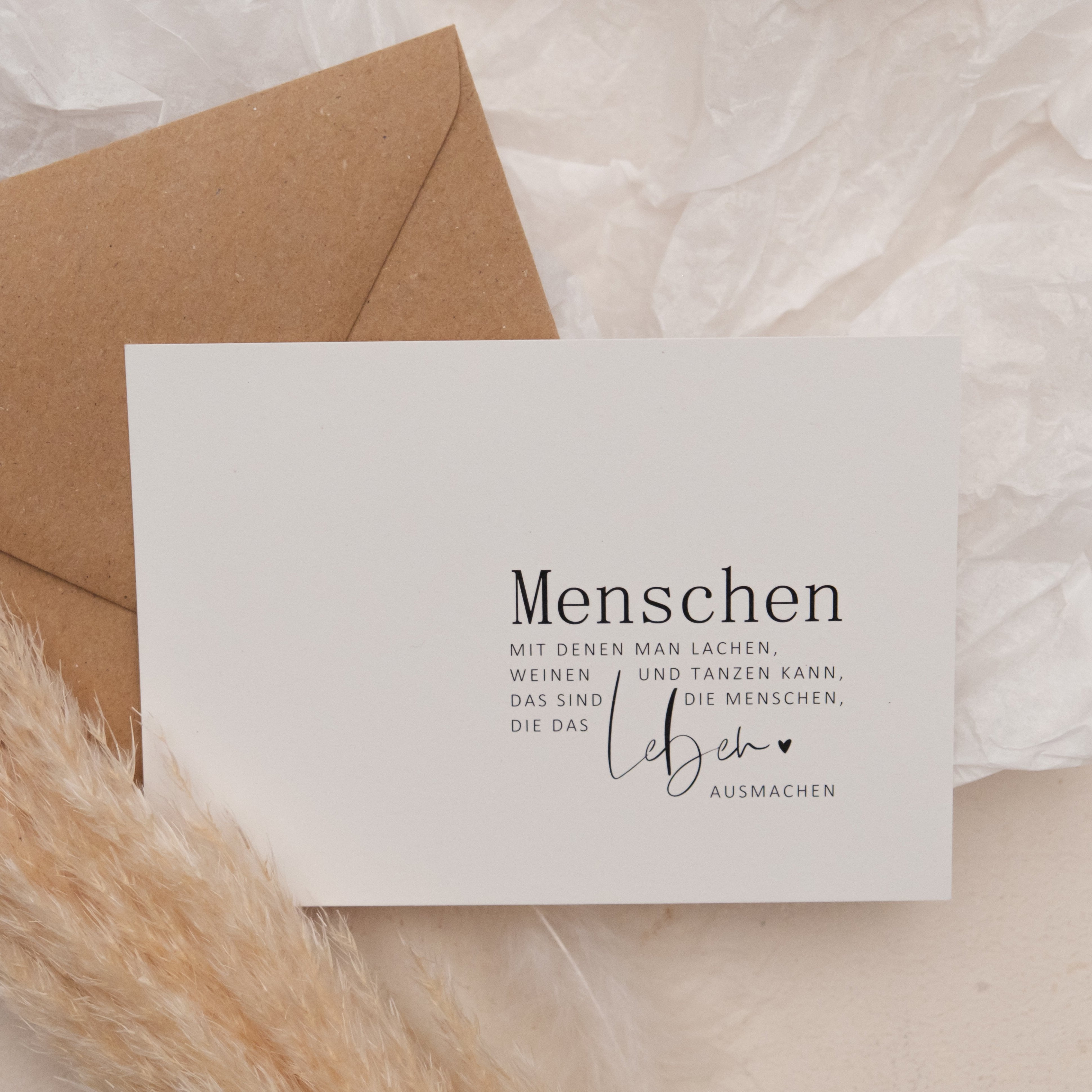 Die Karten sind im professionellen Digitaldruck im Postkartenformat A6 (105x148mm) auf 300g Recyclingpapier (Blauer Engel) in einem modernen hellen betongrau gedruckt und befinden sich in einer Kraftkartonbox.