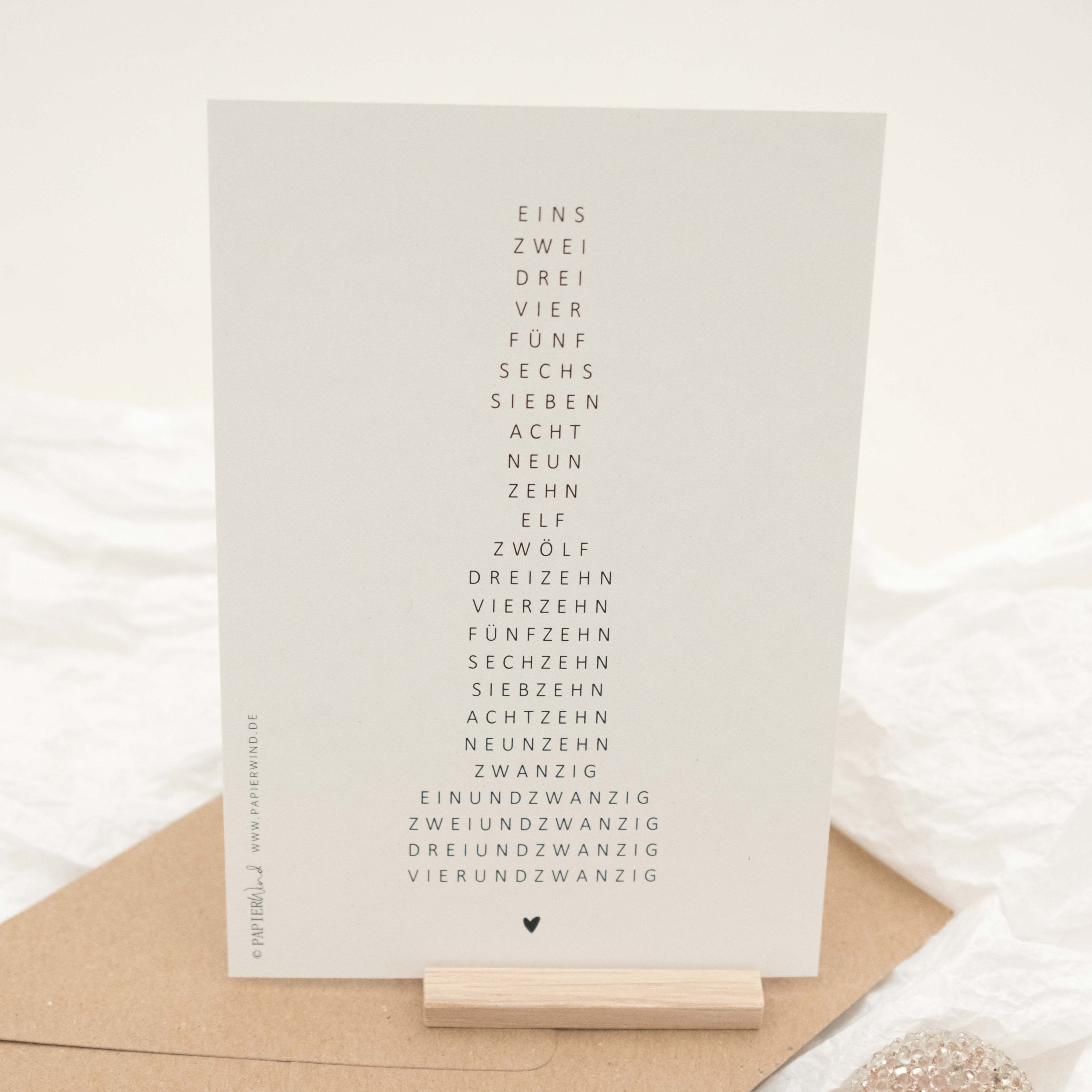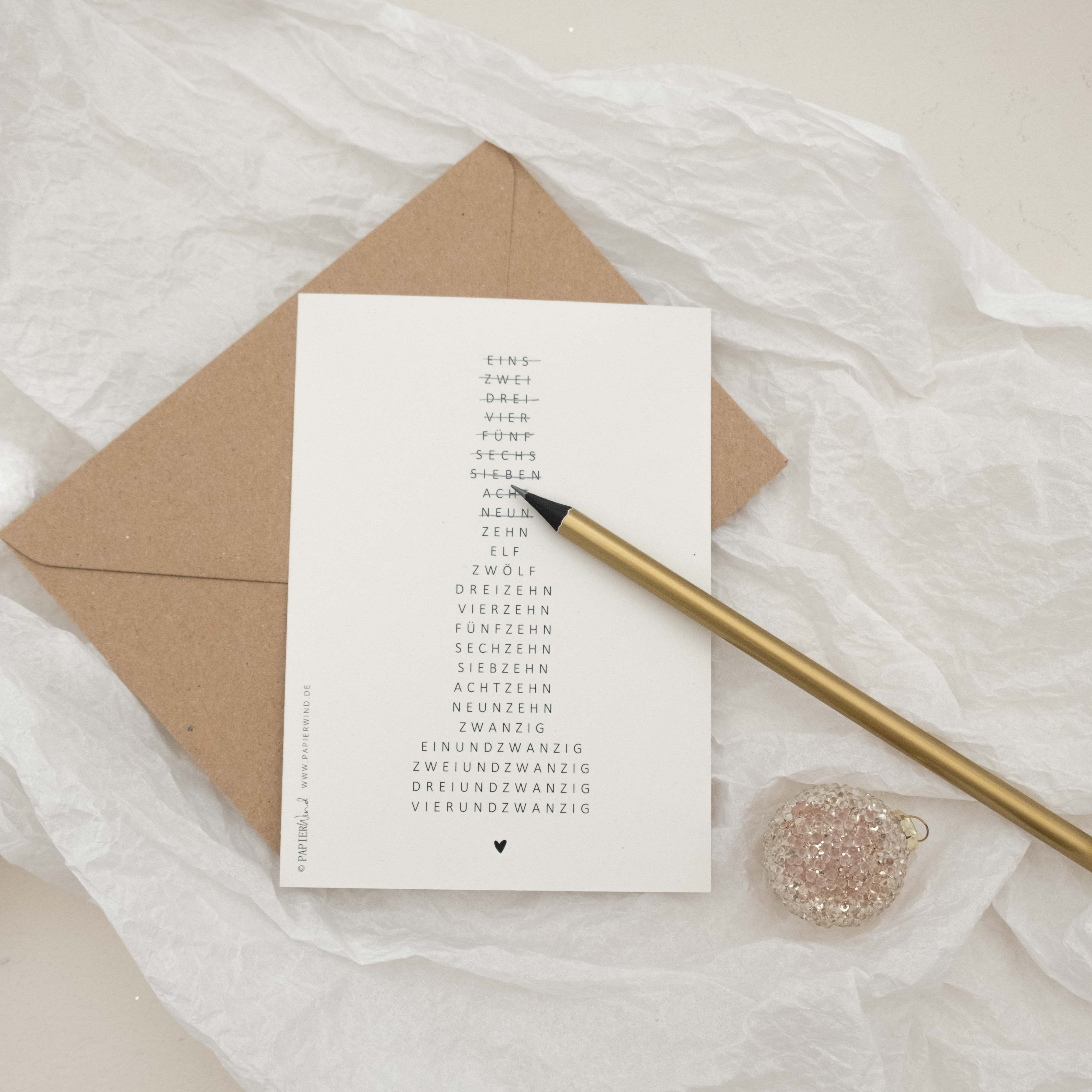 Auf der Rückseite der Karte kann man jeden Tag eine Zahl abstreichen, bis der 24. erreicht ist.